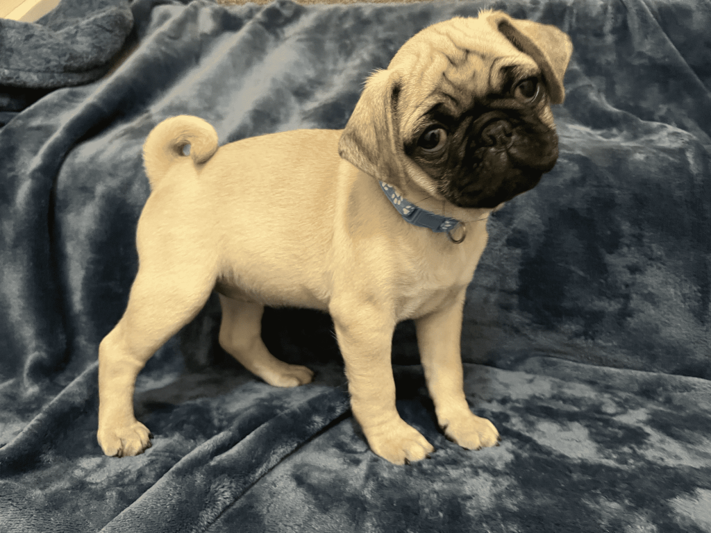 Five female pug puppies for sale. Mom (75% pug/25% beagle) and Dad (100% pug) are the family pets. The puppies are 10 weeks old, had 2 sets of shots, been dewormed three times, and are 80% potty trained. Very loved, well-socialized and will make great family pets! Don’t miss this opportunity to bring your next furbaby home!